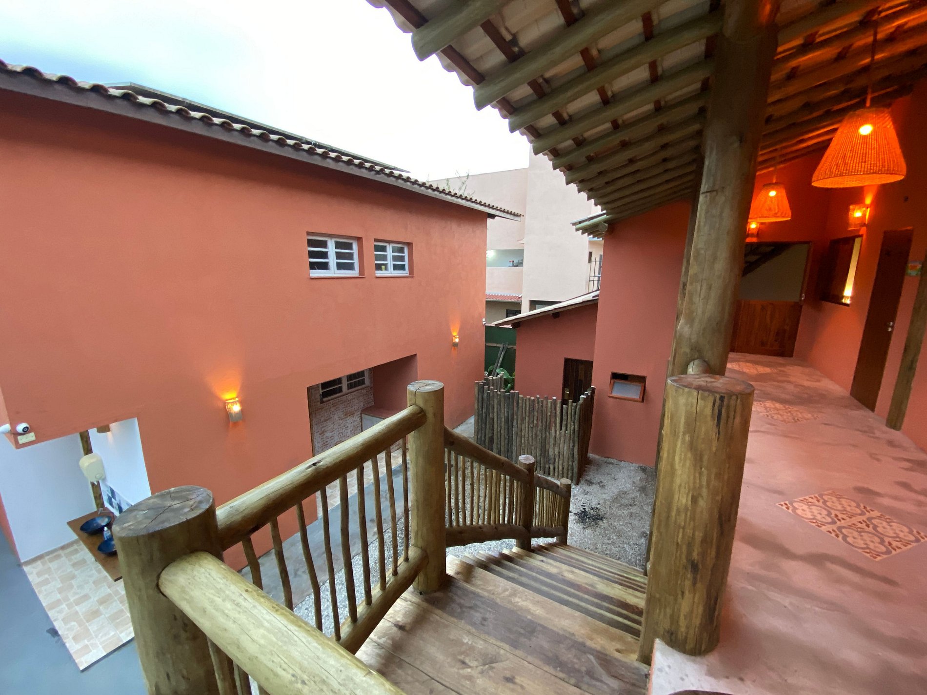 Estacionamento para os veículos na frente da pousada e câmeras de vigilância.
